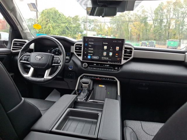 As a Limited model, the Tundra Hybrid comes equipped with a host of premium amenities, including heated and ventilated front seats, a power-adjustable driver's seat, and a heated leather-wrapped steering wheel. The Panoramic View Monitor Package and the Power Package further enhance the driving experience, providing you with a 360-degree camera system and a convenient 400W/120V AC power supply in the rear seat and bed.